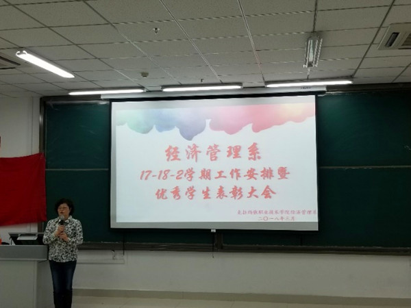 经济管理系负责人陈玲老师向受到表彰的学生和班级表示衷心祝贺,希望他们不骄不躁,在新的起点再创更好的成绩,希望全体学生以他们为榜样,积极进取,勇攀高峰。