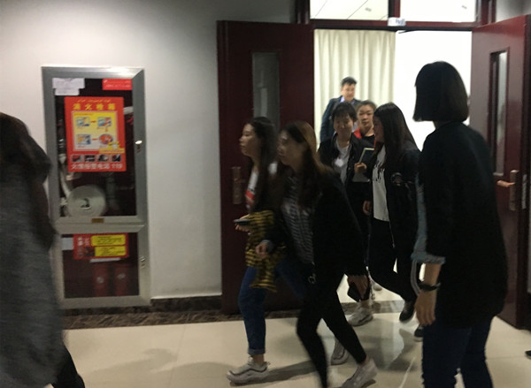 21:20活动的疏散环节正式开始,在一声哨响后全体在场学生在老师与工作人员的指引下迅速撤离现场,撤出C7教学楼后各班快速有序地排查人数并向老师报告。最后全体人员全部安全撤离。此次演练真正做到了安全、快速、有序。