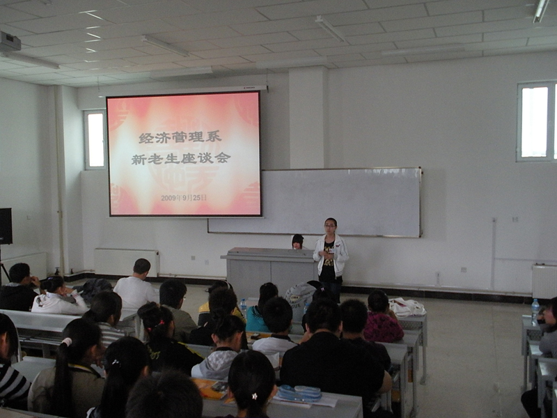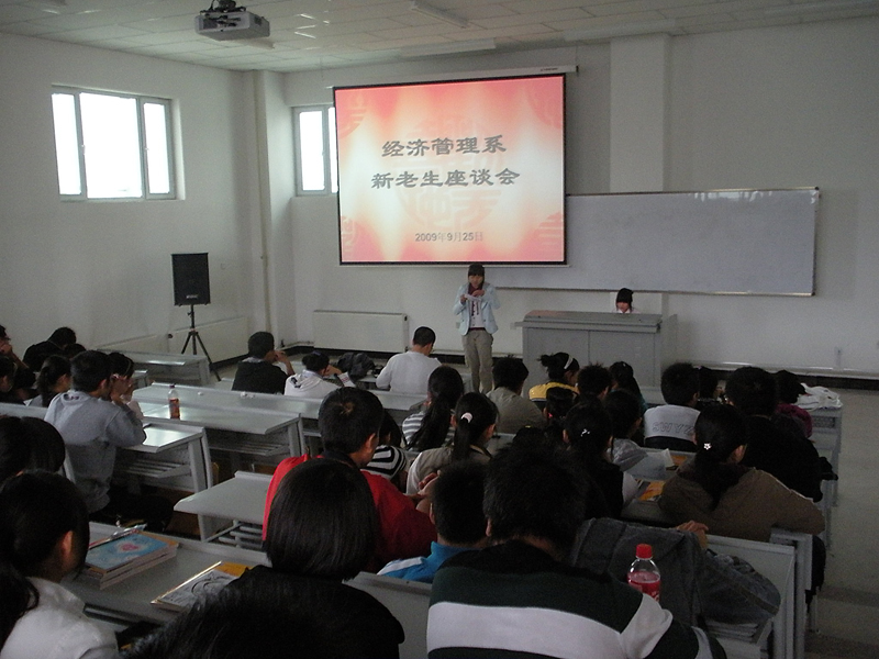 2009年9月25日,经济管理系在4123教室举行新老生座谈会,系团总支、学生会学生干部、老生代表,以及我院09级全体新同学参加了此次新老生座谈会。