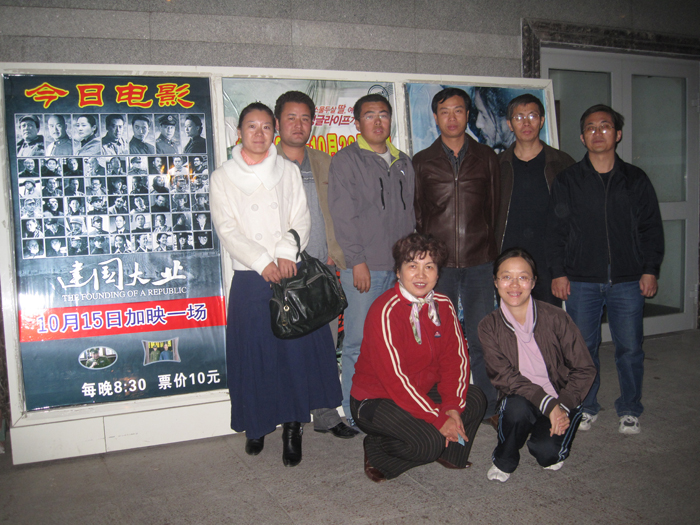 2009年10月15日,思政经管党支部组织支部全体教师党员和入党积极份子开展了观看《建国大业》影片的爱国主义教育活动。通过观看影片,大家深刻了解到无数革命先烈浴血奋战换来了新中国的建立,换来了人民的自由和民族的解放。革命先烈用自己的鲜血和生命履行了自己入党时的誓言。支部书记景四新老师对本次活动提出了要求,希望支部全体党员和入党积极份子,一定要以革命先烈为榜样,做到不辜负先烈、不愧对群众、不枉度人生,在今后的工作和学习中一定要倍加努力,时时处处起到模范带头作用,用自己的实际行动去履行入党时的誓言。下面图片报道:
