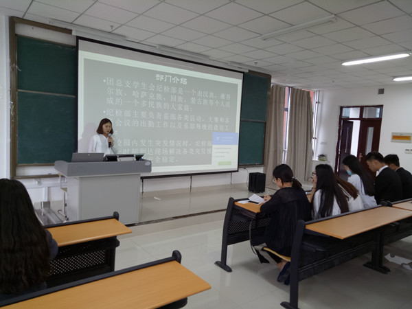 为加强从严治团,规范对学生干部的管理,进一步做好学生会的各项工作,经济管理系团总支于2017年5月26日6点10分在C7一区101教室成功召开了经济管理系团总支学生会部长述职报告大会,经济管理系辅导员胡文老师,以及经济管理系团总支学生会全体成员参加了本次会议。