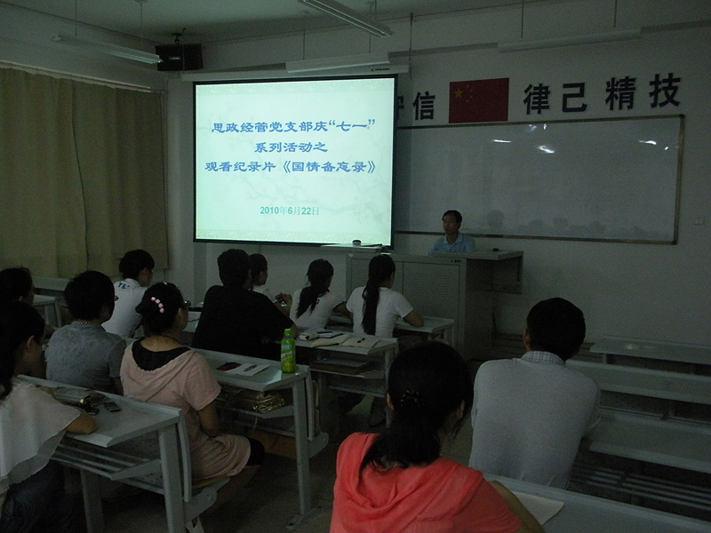 为纪念中国共产党成立89周年,进一步加强支部党员队伍建设,不断提高广大党员深入学习实践科学发展观的自觉性,思政经管党支部在“七一”来临之际,开展了以庆祝建党89周年为主题的系列活动。2010年6月22日18:00,支部全体党员和入党积极分子在4314教室一同观看了大型纪录片《国情备忘录》的第一集《中国之谜》。对于许多的迷惑,如:30年不变的经济高速增长,金融危机中奇迹般地率先回暖,中国今天受到世界的关注。为什么西方经济学理论无法解释中国今天的发展成就?我们和西方经济起步时的情况差别在哪里?中国为什么必须走自己的道路?中国经济转型目标模式的精髓是什么?支部全体党员和入党积极分子通过观看纪录片得到了明确的解答。