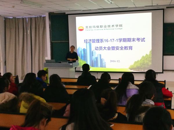 2016年12月20日晚6:30经济管理系在c7一区101教室召开了16-17-1学期期末考试动员大会暨安全教育会议,会议由经济管理系主任刘新生老师主持。