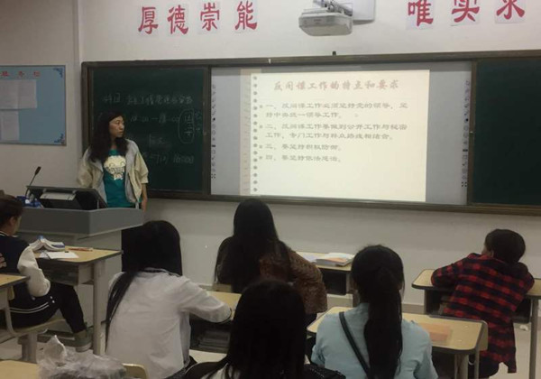 为深入贯彻落实“六五”普法规划,不断创新“法律进校园”活动,营造校园法治文化氛围,增强广大学生“与法律同行”意识和学法、知法、守法、用法的自觉性。2016年10月22日晚9点我系组织在校班级开展法制教育活动,各班主任利用班会时间对班内学生进行法制教育,班主任都认真组织教学,将法制教育的意义和重要性给学生讲到,教学形式多样,充分利用多媒体。我系共有在校班级12个,受教育学生共567名,此次教育效果良好。