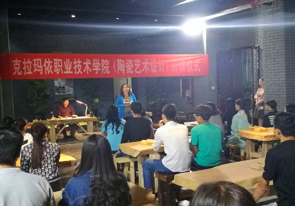 2016年9月27日,克拉玛依职业技术学院《陶瓷艺术设计》课程在克拉玛依紫砂馆开课仪式开课仪式,克拉玛依市旅游局副局长石健、克拉玛依区副区长王炎、学院副院长付梅莉、新疆丝路采砂矿业有限责任公司董事长潘君东、学院办公室主任王卫民、学院经济管理系主任刘新生等领导和参与该课程学习的同学们出席本次开班仪式。