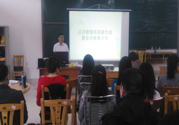2016年3月28日星期一下午六点,经济管理系在C6一区305召开系部安全教育会议,此次会议由经济管理系主任刘新生老师主持,经济管理系全体在校教职工参加会议。