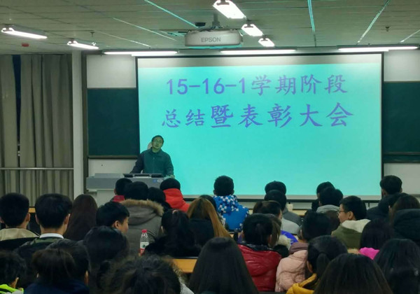 12月23日,下午八点整,经济管理系在我校C7 101教室组织召开了15-16-1学期阶段总结暨表彰大会,参加会议的有经济管理系主任刘新生老师、辅导员胡文老师、团总支书记马芮老师、教学秘书乔涵老师、以及我系各班学生代表。