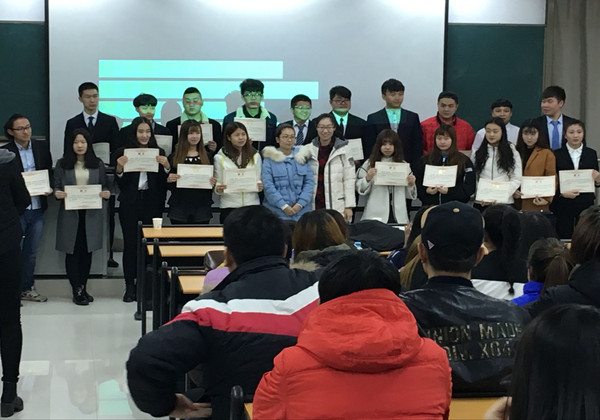 刘主任总结发言结束后,我系团总支书记马芮老师和辅导员胡文老师为本学期的优秀学生会干部、干事,宿舍卫生评比中的优秀宿舍颁发奖状及奖品。