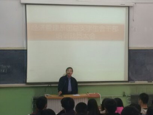 2014年11月5日17:40许,经济管理系团总支学生会干部培训动员大会在克拉玛依职业技术学院小报告厅举行,会议按照程序与序进行,系主任刘新生老师、胡文老师、系主席和团支书,经济管理系学生会成员参加了此次大会。