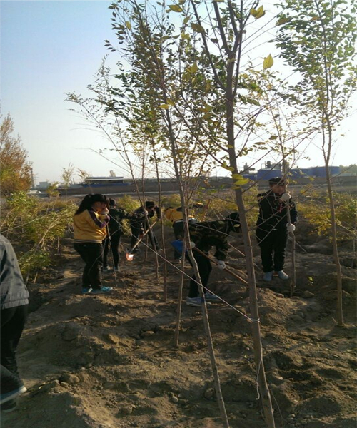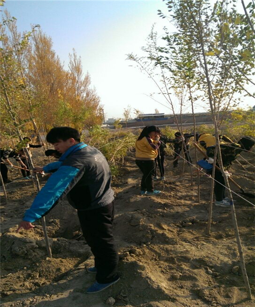 2014年10月23日,克拉玛依职业技术学院经济管理系带领学校大二学生赴3公里外的地方参加义务植树活动。