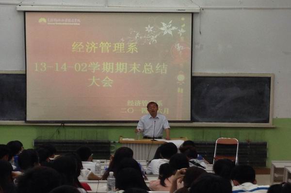 2014年3月29日21时,经济管理系在学校小报告厅召开本学期工作总结大会,参会人员有经济管理系所有班主任和在校生。