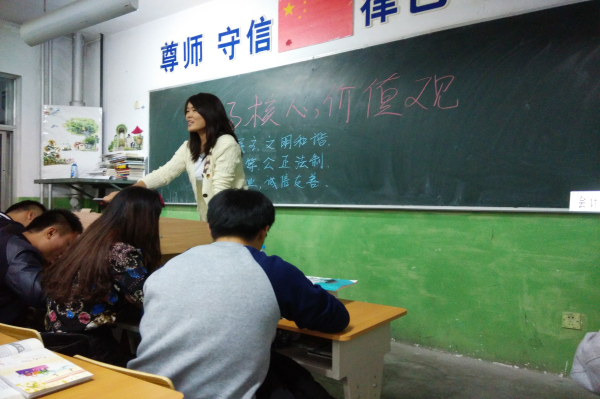 2014年9月22日晚,会计1231班举行了一次题为“弘扬核心价值观”的主题团课。与以往班会形式不同,主持人以问问题留下悬念的方式开始,首先问到大家关于自己对核心价值观的理解,并引起了同学们的好奇和探索欲。大家纷纷表达自己的观点和看法。从职业,个人意识和行为表现等方面谈到了价值观的意义和导向作用。紧接着,主持人引出主题并介绍社会主义核心价值观包含的具体内容包括24个字: 富强 民主 文明 和谐 自由 平等 公正 法制 爱国 敬业 诚信 友善 。它是人们不同的世界观产生的方法论,是人们认识评价人生活动所具有的价值属性时所持有的根本观点和看法,是一个权衡选择的结果,让人们受正确的价值导向影响。通过介绍小故事,讲述雷锋精神,学习感动中国人物生平,习近平主席在北大师生座谈会上的讲话主旨等方式加深了大家对核心价值观的理解,大家积极的讨论热情使得气氛热烈起来,团课最后,班主任也做出了鼓励性的讲话并总结。